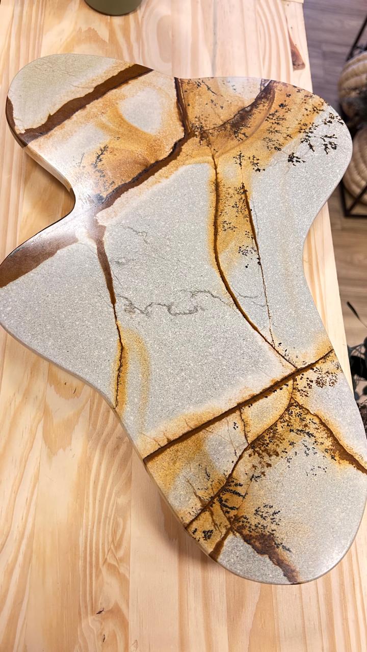 Centro de Mesa Burle Marx Roma é esculpido artesanalmente no Quartzito Roma.